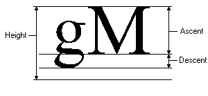 The line height is the sum of the ascent and descent plus a given additional space (if this is the case). All values are given in pixels and are positive.